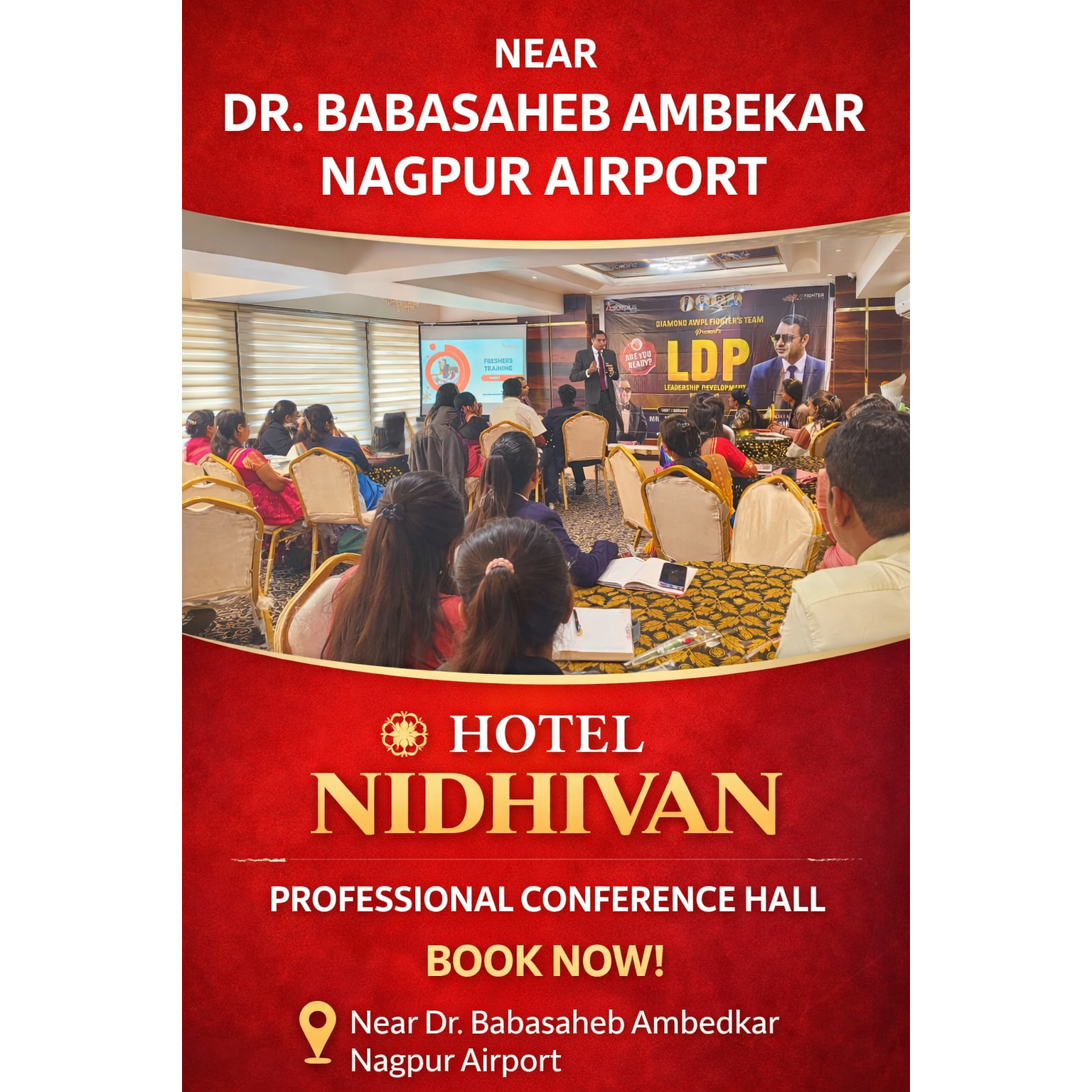 Hotels Near Dr. Babasaheb Ambedkar Nagpur Airport HOTEL NIDHIVAN – Comfort, Convenience & Professional Hospitality If you are searching for hotels near Dr. Babasaheb Ambedkar Nagpur Airport, Hotel Nidhivan is the perfect destination for business travelers, corporate guests, and event organizers. Strategically located close to the airport, the hotel offers easy accessibility, modern amenities, and a professional environment. Premium Conference Hall Facility Hotel Nidhivan features a well-designed, professional conference hall suitable for a wide range of corporate and social requirements, including: Corporate meetings & boardroom sessions Training programs & workshops Seminars, presentations & conferences Business gatherings & professional events The conference hall is equipped with comfortable seating, elegant interiors, proper lighting, and a calm, focused atmosphere to ensure productive meetings and successful events. Ideal Choice for Business & Corporate Guests Being one of the most preferred hotels near Dr. Babasaheb Ambedkar Nagpur Airport, Hotel Nidhivan is ideal for: Business travelers Corporate professionals Event organizers Training institutes & companies The combination of proximity to the airport and professional facilities makes it a reliable venue for both stay and meetings. Why Choose Hotel Nidhivan? Prime location near Nagpur Airport Professional conference hall available Comfortable accommodation Corporate-friendly environment Ideal for meetings, seminars & events