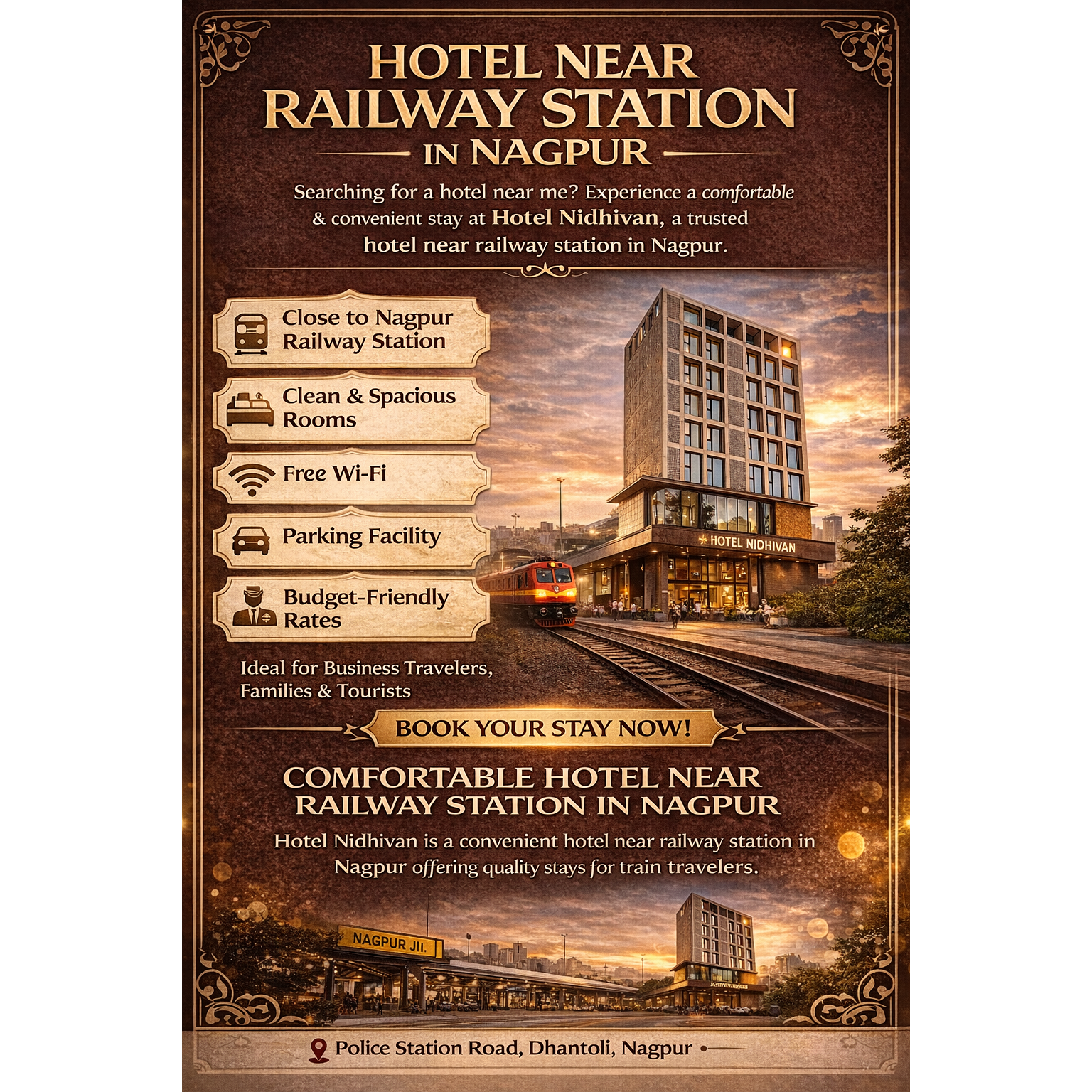 If you are searching online for a hotel near railway station in Nagpur, Hotel Nidhivan – Nagpur is a reliable and comfortable choice for travelers looking for convenience and quality stay. Located in a well-connected area of Nagpur, the hotel offers easy access to major city locations, making it an ideal stay option for guests arriving by train. Many visitors searching for a hotel near me in Nagpur prefer Hotel Nidhivan because of its convenient location, clean rooms, and professional hospitality. Hotel Nidhivan is a trusted hotel near railway station in Nagpur, providing comfortable and well-maintained rooms designed for relaxation after a long journey. Guests staying at the hotel can enjoy essential amenities such as free Wi-Fi, parking facility, modern interiors, and attentive service from the hotel staff. For travelers searching online for a hotel near me, the hotel offers the perfect balance of affordability, comfort, and accessibility. Being a convenient hotel near railway station in Nagpur, Hotel Nidhivan is suitable for business travelers, families, and tourists visiting the city. Its strategic location allows guests to reach important places quickly while enjoying a peaceful stay environment. Travelers often search for a hotel near me when arriving in a new city, and Hotel Nidhivan stands out as a dependable option because of its cleanliness, service quality, and easy connectivity. If you are planning a trip and need a hotel near railway station in Nagpur, Hotel Nidhivan provides a comfortable stay experience with modern facilities and friendly service. Whether you are visiting for business or leisure, choosing Hotel Nidhivan, a well-located hotel near railway station in Nagpur, ensures a smooth and convenient stay in the city. Book your ROOM - https://bookings.resavenue.com/resBooking/rooms?regCode=VTAT0429& roomSearchId=8ab6f30a77af489f9df7c14319b7c71b& adult_1=1